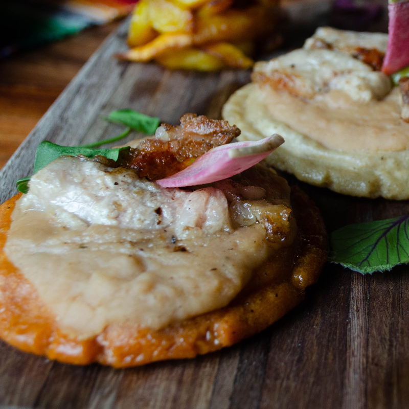 Servidos con esquites con un toque de epazote fresco y chile serrano, acompañados de mayonesa de habanero, queso de rancho y tortillas recién hechas.